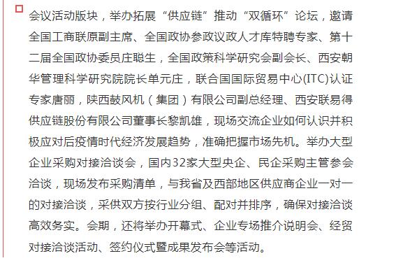 中國西部國際采購展覽會(以下簡稱“國際采購展”),于2020年10月16日-18日在西安國際會展中心展覽館1號展廳舉行。本屆國際采購展以“共享全球市場,提升高質(zhì)量發(fā)展”為主題,深度融入共建“一帶一路”,助力陜西打造內(nèi)陸改革開放高地,落實(shí)好穩(wěn)外資、穩(wěn)外貿(mào)的要求,更好服務(wù)疫情常態(tài)化形勢下企業(yè)開拓國際市場。我公司受西安貿(mào)促會邀請參加本次展覽會。